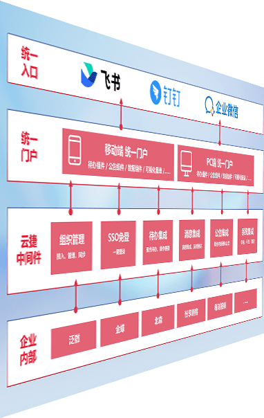 对协作平台提供支持服务,,,,支持企业应用与协作平台对接,,,包含组织同步、、、、消息集成、、待办集成等。。。支持目前主流的协作平台:钉钉、、、、企微和飞书。。。